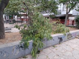 Επίσης, στην Κοζάνη έσπασε ένα μεγάλο κλαδί από δέντρο στην παιδική χαρά στην οδό Πίνδου: