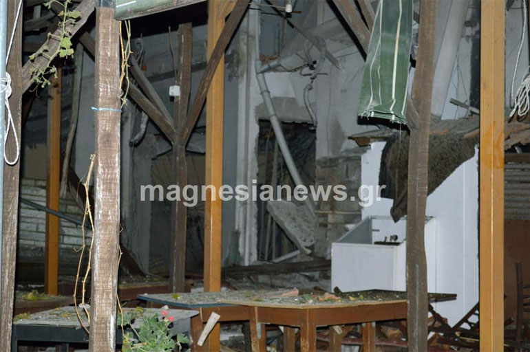 Η ένταση από την έκρηξη μέσα στην ταβέρνα «Τα Σκαλάκια» που βρίσκεται κοντά στην πλατεία ήταν τέτοια που αποκολλήθηκαν κομμάτια του κτιρίου και εκτοξεύθηκαν σε μεγάλη απόσταση. Για καλή τύχη όλων η ταβέρνα δεν λειτουργούσε εκείνη την ώρα καθώς επίσης και καμία άλλη επιχείρηση σε κοντινή απόσταση. Σε διαφορετική περίπτωση ίσως να θρηνούσαμε θύματα.
