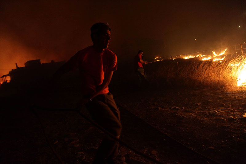 Σύμφωνα με τον δήμαρχο Καρύστου, οι περισσότεροι κάτοικοι έχουν εγκαταλείψει τις εστίες τους και βρίσκονται στην παραλία.
