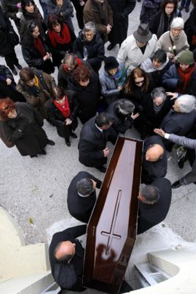 Το τελευταίο αντίο απηύθυναν φίλοι συγγενείς και συνεργάτες της Δόμνας Σαμίου, που τη συνόδευσαν σήμερα στην τελευταία της κατοικία.