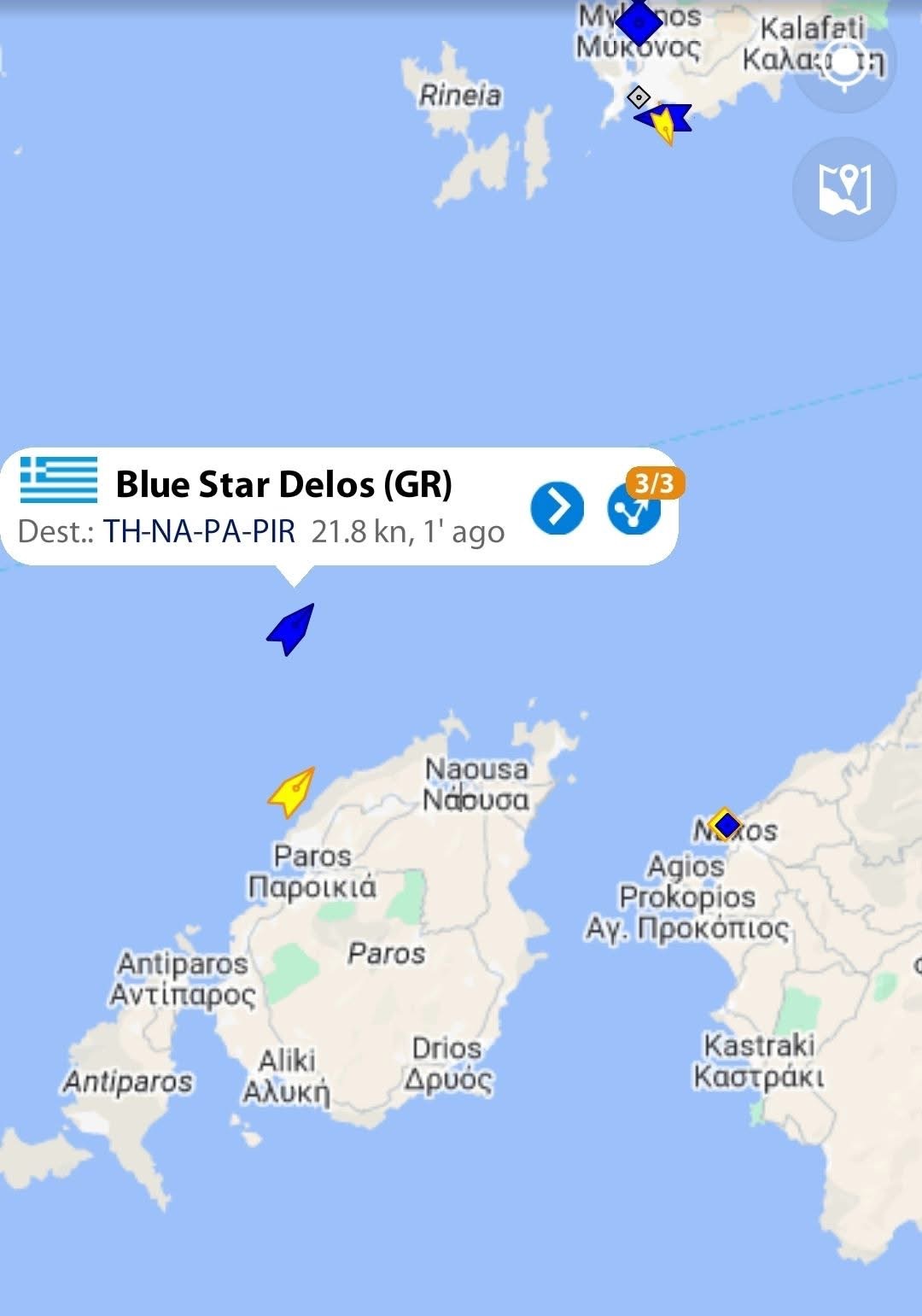 To ιστιοφόρο εξέπεμψε σήμα SOS, πλέοντας μεταξύ Πάρου και Μυκόνου και διεξήχθη επιχείρηση διάσωσης από ένα ελικόπτερο Super Puma και το Blue Star Delos, που βρίσκόταν πολύ κοντά στο σημείο.