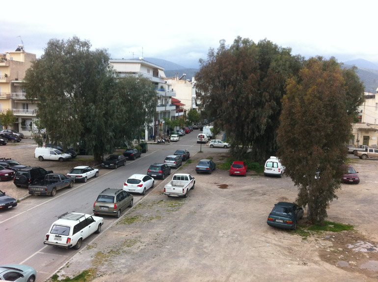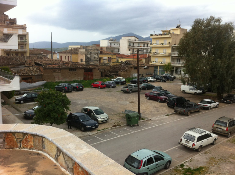 Η πλατεία Θεάτρου από ψηλά. Οι κάτοικοι των σπιτιών που βλέπετε καλούνται να πληρώσουν δεκάδες χιλιάδες ευρώ, για το... προνόμιο της τοποθεσίας...