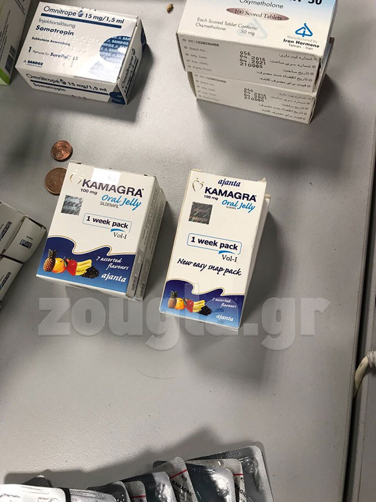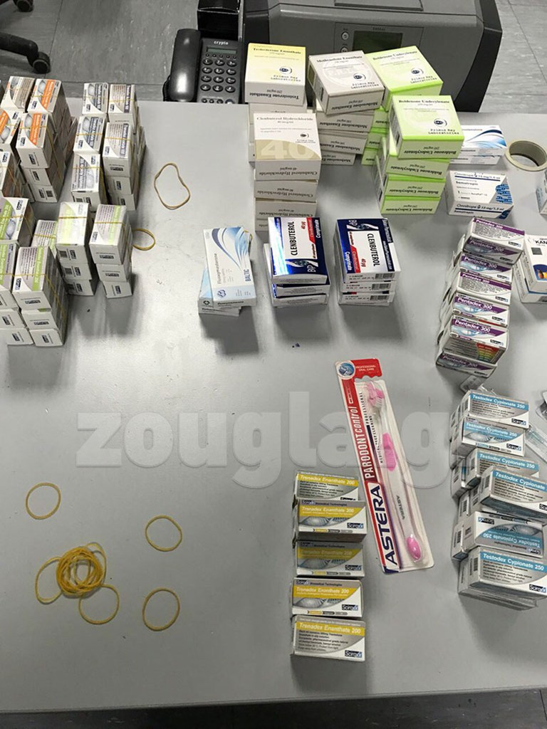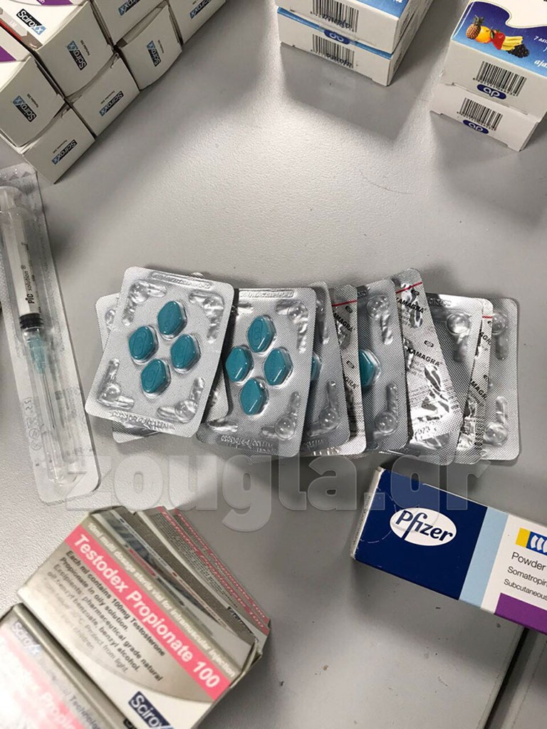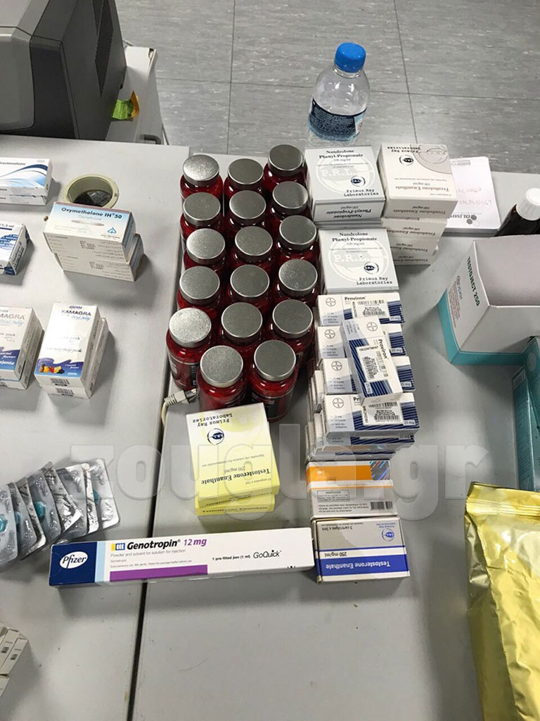 – 570 σκευάσματα διαφόρων φαρμάκων (κυρίως αναβολικών και άλλων σχετιζόμενων με την αντιμετώπιση της στυτικής δυσλειτουργίας), εκτιμώμενης αξίας άνω των 35.000 ευρώ
