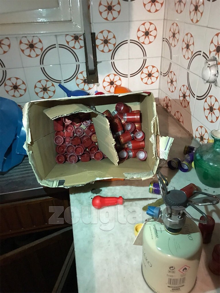 – 420 πώματα-καπάκια με ενδείξεις γνωστών σημάτων, τα οποία τοποθετούνταν στις ξαναγεμισμένες φιάλες, προκειμένου να μοιάζουν ανέπαφες.