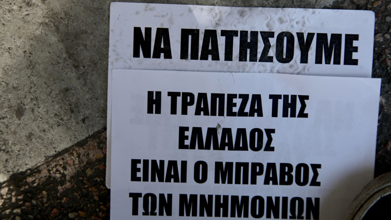 «Ντου» στην τράπεζα της Ελλάδας πραγματοποίησαν νωρίς το μεσημέρι μέλη του Ρουβίκωνα.