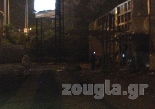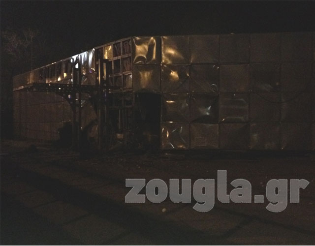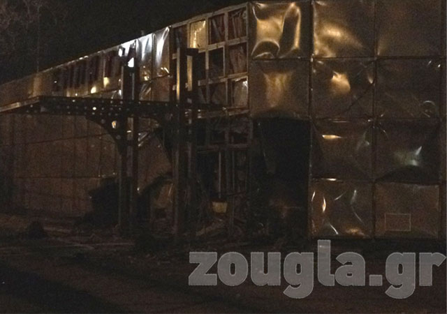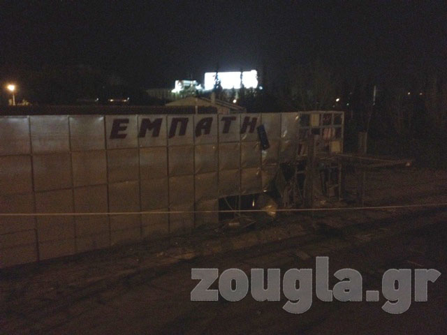 Η πρόσοψη της επιχείρησης έχει σχεδόν καταστραφεί, ενώ κομμάτια μετάλλου εκφενδονίστηκαν σε απόσταση αρκετών μέτρων. Την ίδια στιγμή καταστροφές έχει υποστεί και ο εξωτερικός χώρος του νυχτερινού κέντρου.