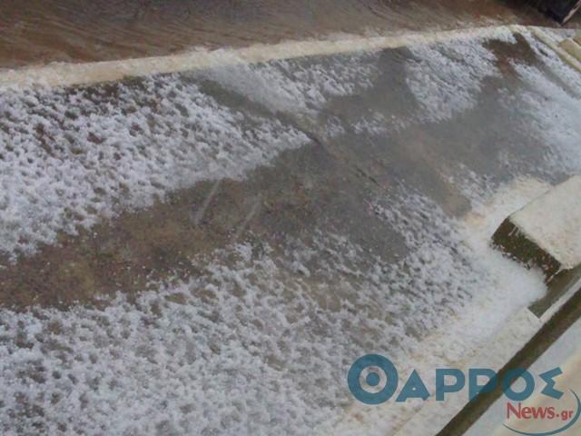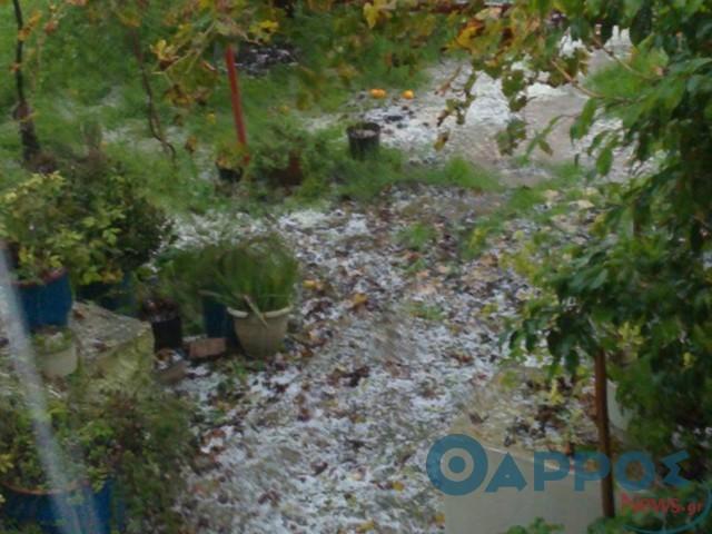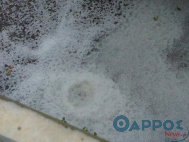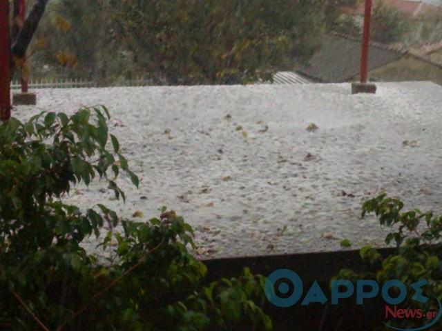 Το χαλάζι διαδέχτηκε, λίγο μετά τις 14:30 το μεσημέρι, την ασταμάτητη βροχή που πλήττει τις περιοχές του Πεταλιδίου και Αγίου Ανδρέα στη Μεσσηνία.