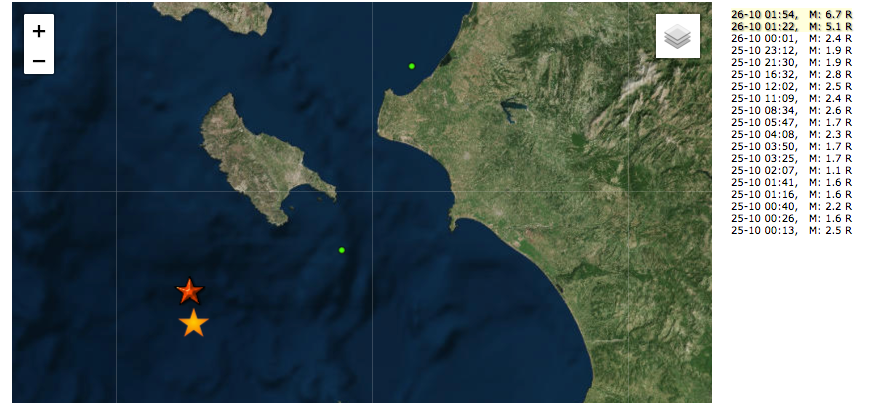 Δείτε χαρακτηριστικά τη μετασεισμική δραστηριότητα μέχρι τις 04:30: