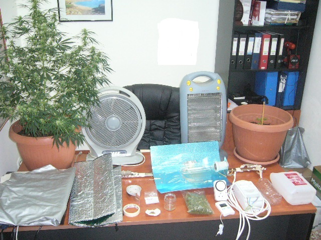- δύο δενδρύλλια ινδικής κάνναβης στο στάδιο της ανάπτυξης, που καλλιεργούνταν επιμελώς σε ειδικά διαμορφωμένο χώρο με τη χρήση τεχνητού φωτισμού και θέρμανσης, καθώς και με τη χρήση κατάλληλου εξοπλισμού (λαμπτήρας υψηλής απόδοσης, θερμάστρα αλογόνου, χρονοδιακόπτη, ηλεκτρικό μετρητή θερμοκρασίας και υγρασίας) μέσα σε γλάστρες, ύψους 95 και 16 εκατοστών αντίστοιχα, τα οποία και εκριζώθηκαν