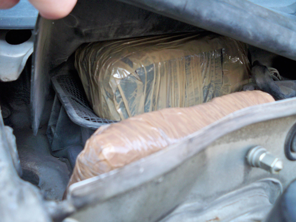 Κατά τη διάρκεια της αστυνομικής επιχείρησης πραγματοποιήθηκε έρευνα, με τη συνδρομή αστυνομικού σκύλου, στο Ι.Χ.Ε. αυτοκίνητο που οδηγούσε βρέθηκαν στο φίλτρο αέρα του κινητήρα και στον εμπρόσθιο θόλο εσωτερικά του καπό τέσσερα δέματα που περιείχαν ηρωίνη, συνολικού βάρους δύο κιλών και 80 γραμμαρίων.
