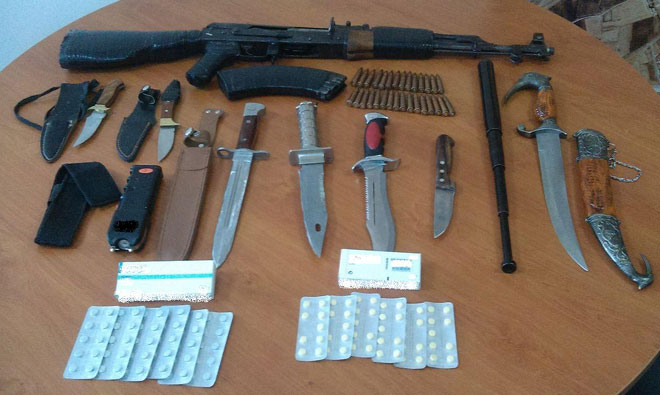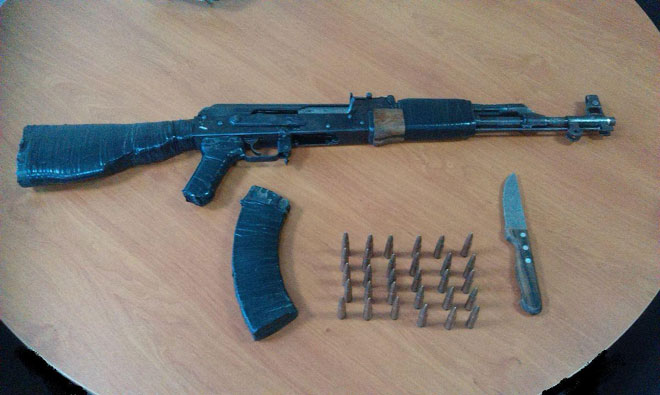 – ένα πολεμικό τυφέκιο (τύπου καλάσνικοφ)