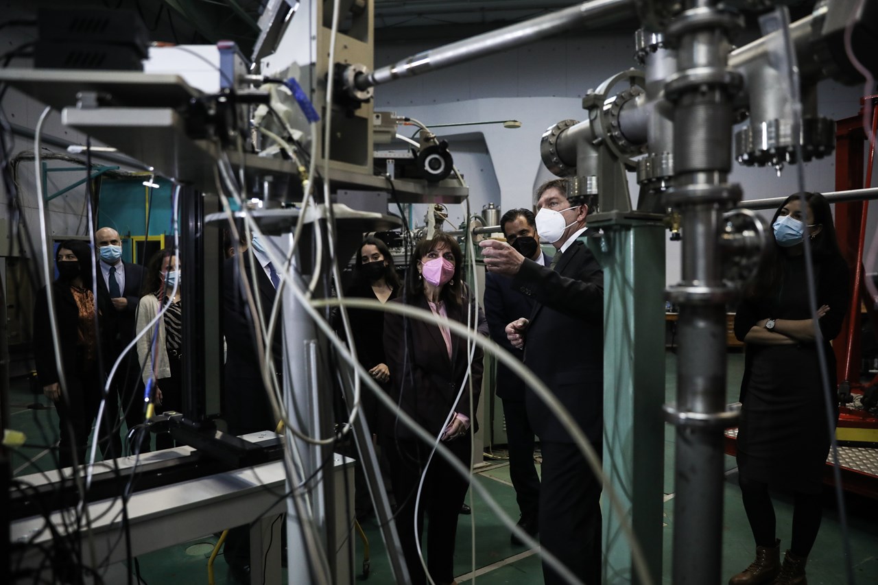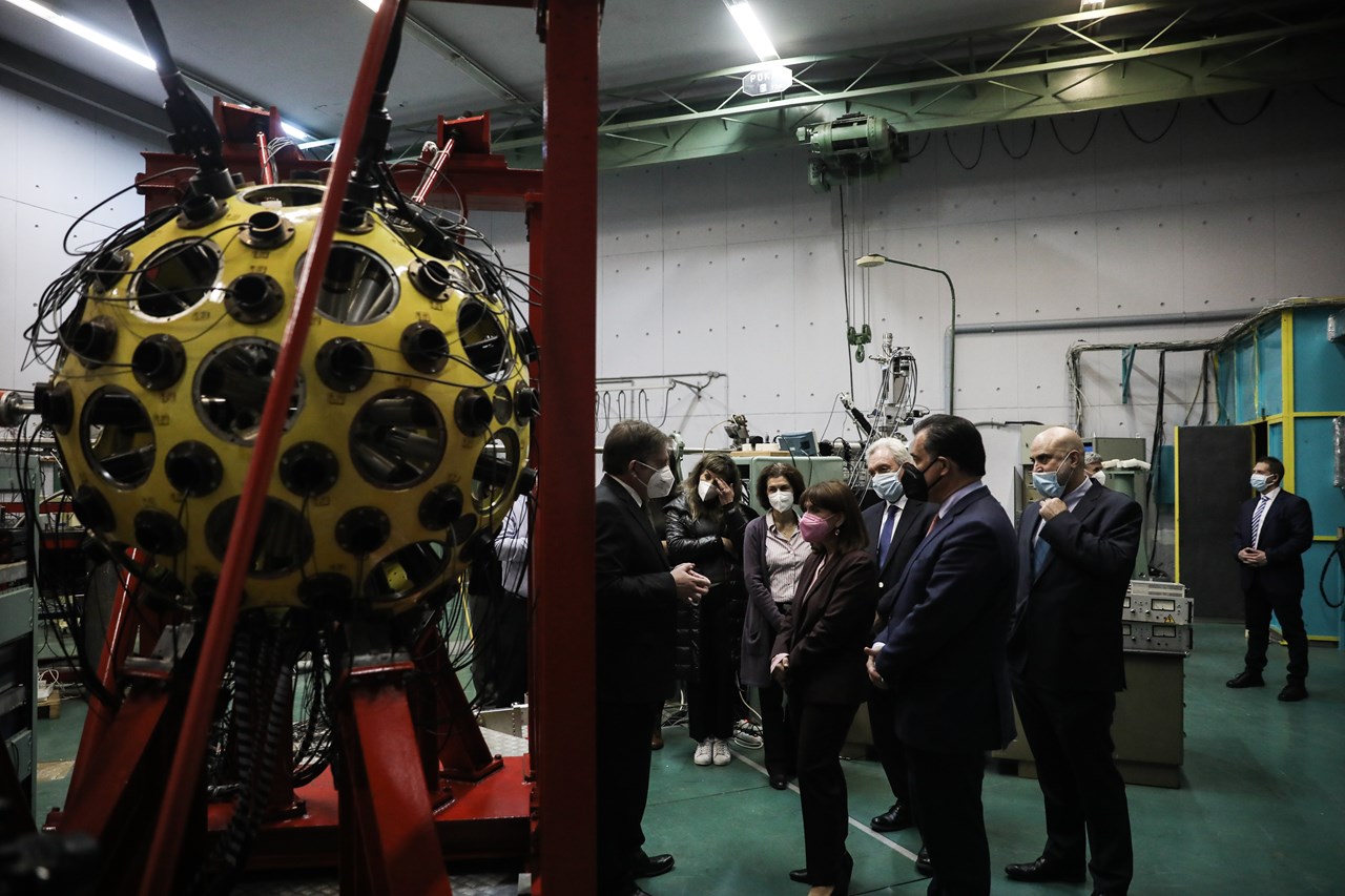 Στη συνέχεια, η Πρόεδρος ξεναγήθηκε στους χώρους του εργαστηρίου του Επιταχυντή (Tandem) από τον διευθυντή του Ινστιτούτου Χρήστο Μάρκου, μαζί με μαθήτριες της Γ Λυκείου.