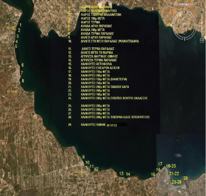 – Οι παραλίες από το Φάρο Αυλίδας μέχρι Χαλκούτσι σε ποσοστό 62,07%