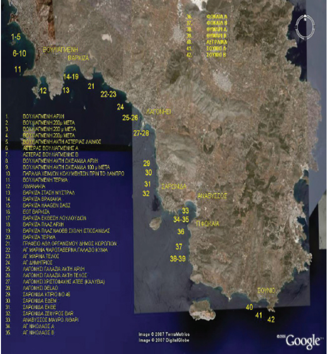 – Ανατολική Αττική: από τον Σχοινιά έως το Λαύριο κρίθηκε το 39,02% των ακτών ακατάλληλο σε σύνολο 41 ακτών που αναλύθηκαν