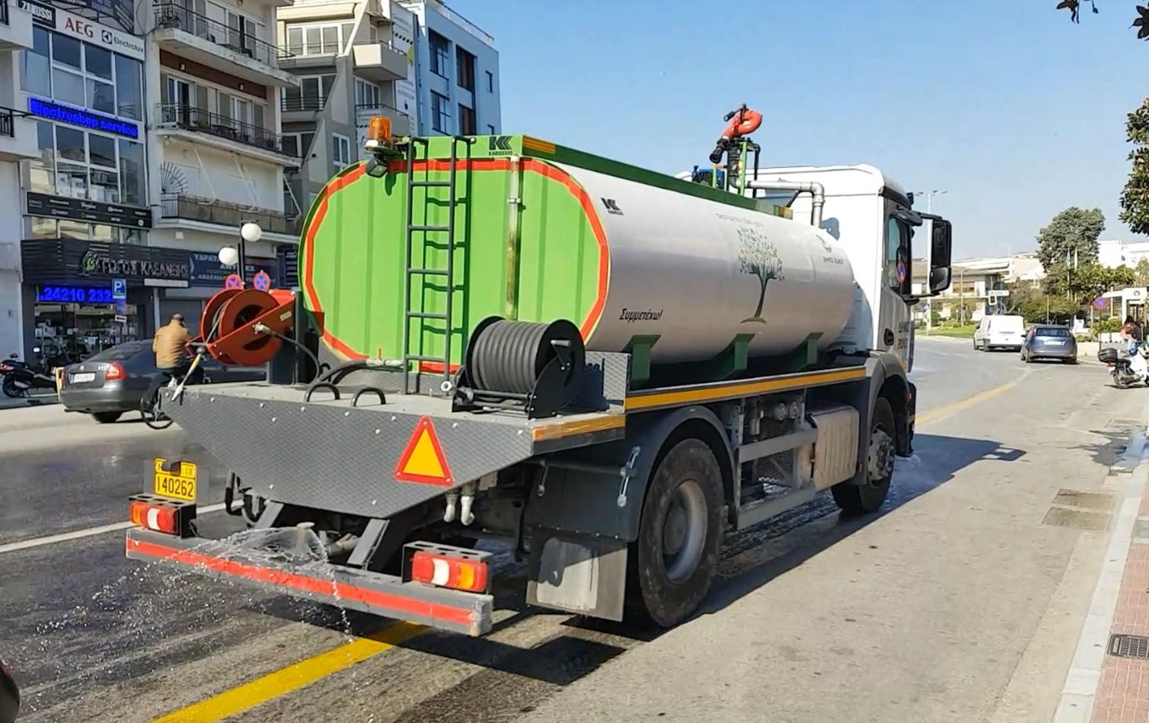 Καθημερινό πρόγραμμα απολύμανσης σε όλες τις λεωφόρους και τους κεντρικούς δρόμους του Βόλου ξεκίνησε από σήμερα ο δήμος και εν μέσω της πανδημίας του κορωνοϊού. Από το πρωί, υδροφόρες του δήμου Βόλου συνοδευόμενες από όχημα της Πολιτικής Προστασίας, αλλά και την παρουσία του δημάρχου Βόλου Αχιλλέα Μπέου, απολυμαίνουν κεντρικές πολυσύχναστες οδικές αρτηρίες, ενώ προπορεύονται μοτοσικλετιστές της ομάδας ΔΙΑΣ για να απομακρύνονται σταθμευμένα αυτοκίνητα στους δρόμους.