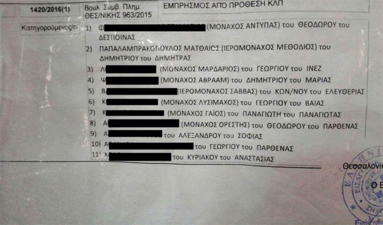 Ποινή κάθειρξης 20 ετών επέβαλε το Μικτό Ορκωτό Δικαστήριο Θεσσαλονίκης στον ηγούμενο της παλιάς Αδελφότητας της Ιεράς Μονής Εσφιγμένου του Αγίου Όρους, όπως επίσης σε έναν μοναχό της ίδιας Αδελφότητας, οι οποίοι κρίθηκαν ένοχοι για τα επεισόδια που εκτυλίχθηκαν τον Ιούλιο του 2013 στο αντιπροσωπείο (κονάκι) της Μονής, στις Καρυές.