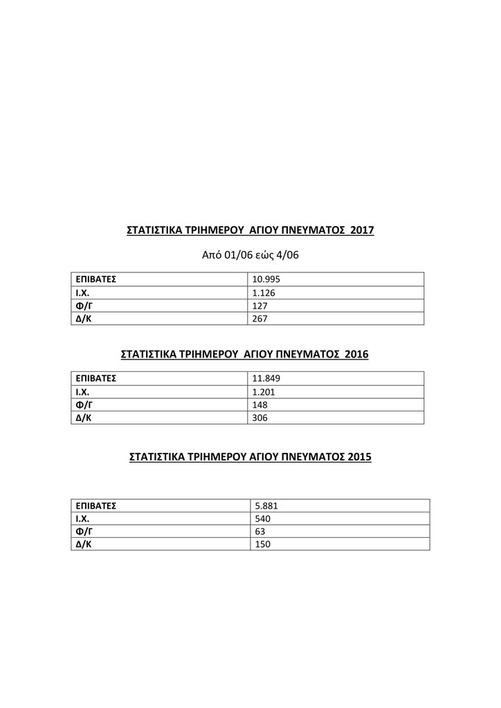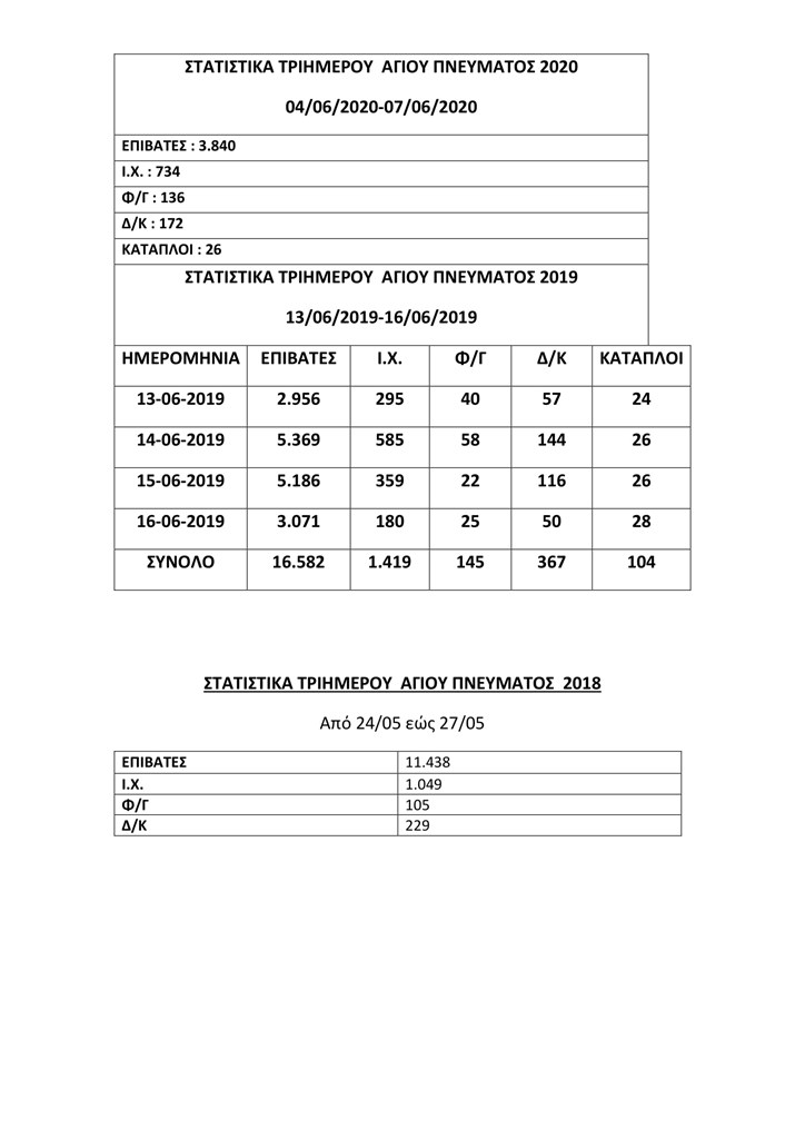 Συγκεκριμένα, ενώ κατά το φετινό τριήμερο από την Πέμπτη 4/6 έως την Κυριακή 7/6, αφίχθησαν στο νησί 3.840 επισκέπτες, 734 αυτοκίνητα και 172 δίκυκλα, κατά το αντίστοιχο τριήμερο του 2019 είχαν αφιχθεί 16.582 επισκέπτες, 1419 Ι.Χ. και 367 δίκυκλα.