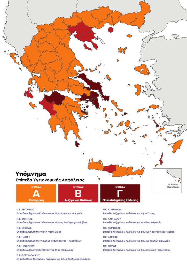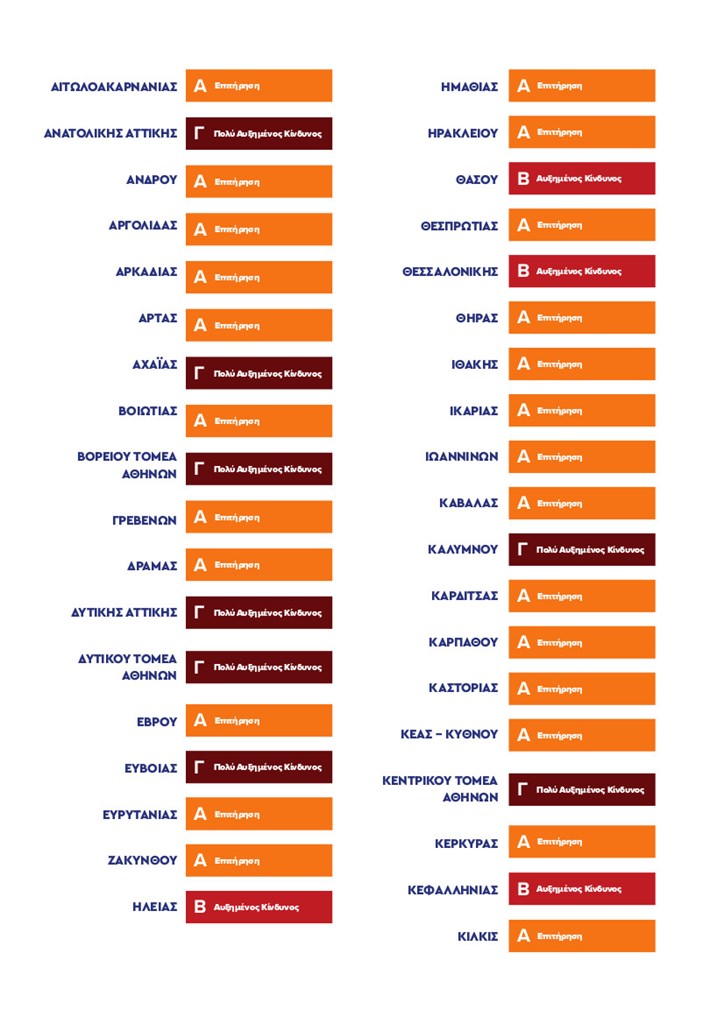 Στο επίπεδο αυξημένου κινδύνου εντάσσονται πλέον οι εξής περιοχές: