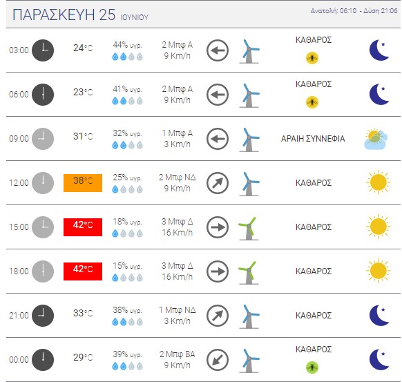 Καιρικές συνθήκες στη Λάρισα, Παρασκευή 25 Ιουνίου: