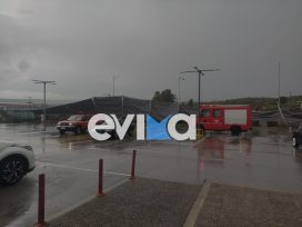 Στο σημείο βρίσκεται η Αστυνομία, η Πυροσβεστική και οι εθελοντές της ομάδας διάσωσης Εύβοιας Sar 312, καθώς τα στέγαστρα έπεσαν πάνω σε κολώνα φωτισμού για να προσφέρουν βοήθεια εάν χρειαστεί, όπως κάνουν πάντα, και συγκεκριμένα να κλείσουν το δρόμο για να αποκατασταθεί η κολώνα που έχει πάρει κλήση προς τον κεντρικό δρόμο.