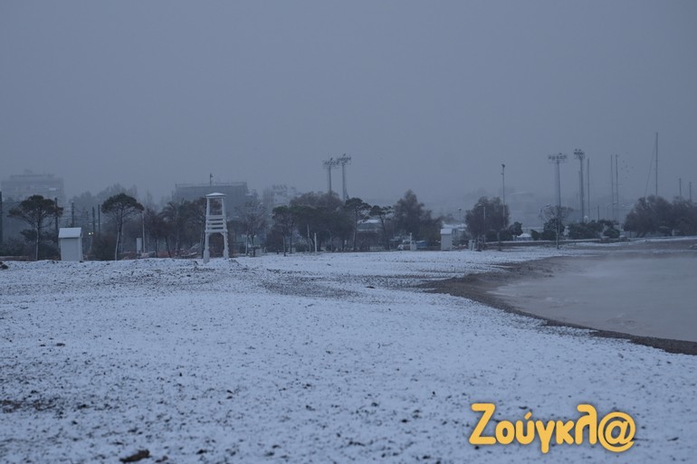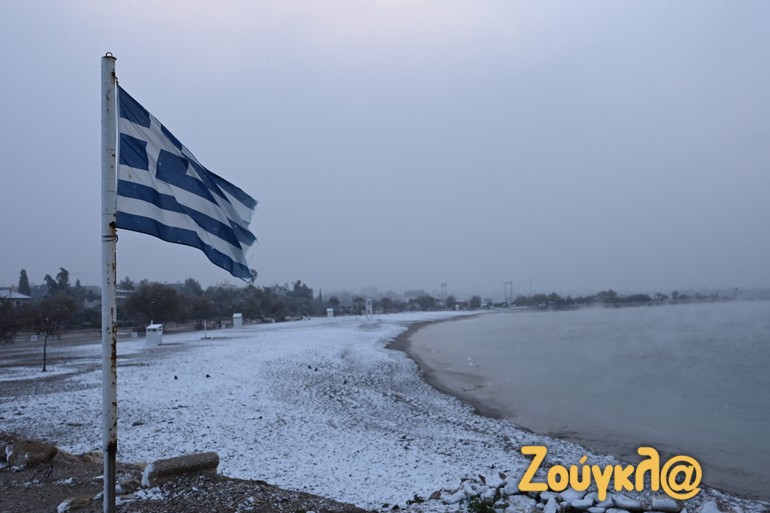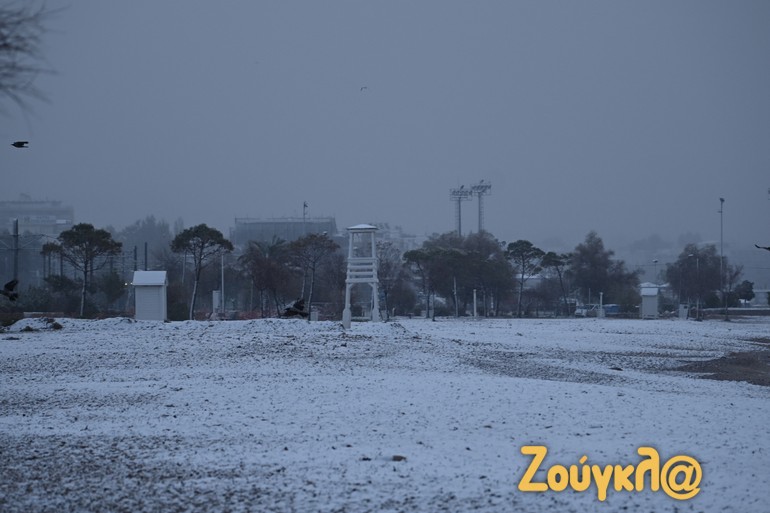 Χαρακτηριστική εικόνα της επέλασης του χιονιά το πρωί της Δευτέρας στο κέντρο της Αθήνας