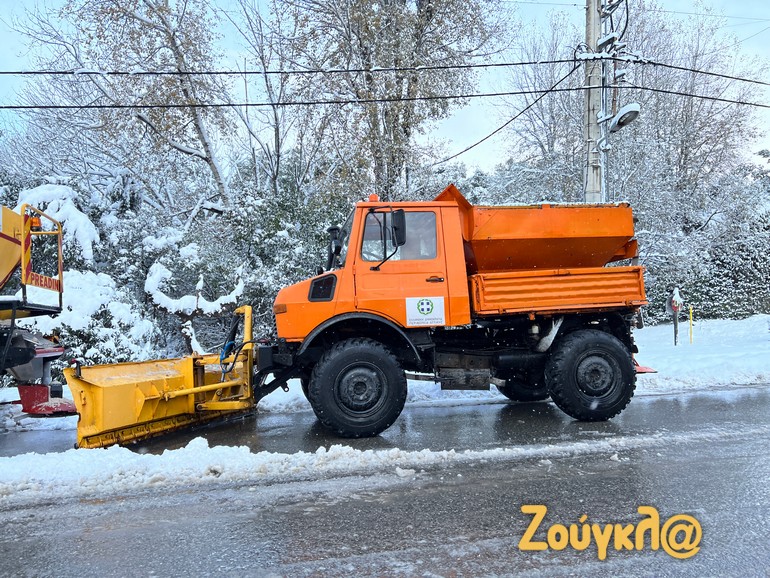 Εχει διακοπεί η κυκλοφορία στη λεωφόρο Πάρνηθος από το ύψος της οδού Νούση προς Πάρνηθα, ενώ στην επαρχιακή οδό Μεγάρων-Αλεποχωρίου στο ύψος της περιοχής Λούμπα προς Αλεποχώρι η κυκλοφορία διεξάγεται μόνο με τη χρήση αντιολισθητικών αλυσίδων.