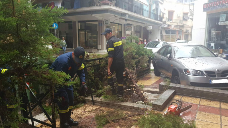 Το περιστατικό σημειώθηκε μέσα σε πάρκινγκ οικοδομής. Στην περιοχή έσπευσε όχημα της Πυροσβεστικής, με τους πυροσβέστες να απομακρύνουν το δέντρο.