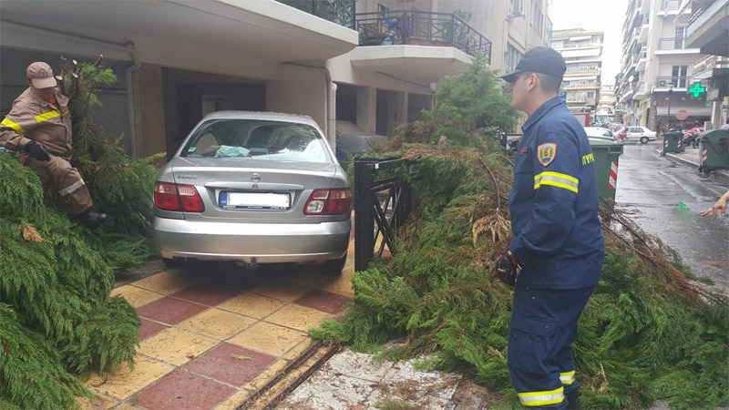 Σφοδρό κύμα κακοκαιρίας πλήττει τις τελευταίες ώρες πολλές περιοχές της χώρας. Το πρωί της Δευτέρας στη Λάρισα δέντρο έπεσε επάνω σε σταθμευμένα οχήματα.