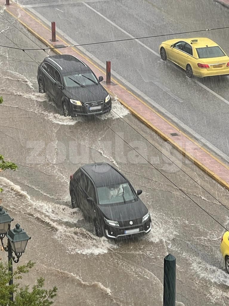 Η μεγαλύτερη λεωφόρος της Αθήνας, η Βασιλίσσης Σοφίας, πλημμύρισε μέρα-μεσημέρι λόγω της έντονης κακοκαιρίας που πλήττει την Αττική το τελευταίο τριήμερο.