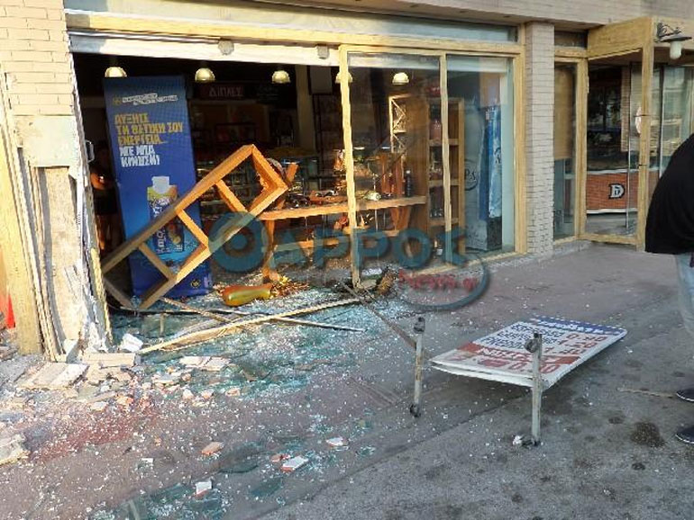 Οι ζημίες στο κατάστημα και στο αυτοκίνητο είναι μεγάλες, ενώ σύμφωνα με τις πρώτες πληροφορίες δεν υπήρξε κάποιος τραυματισμός.