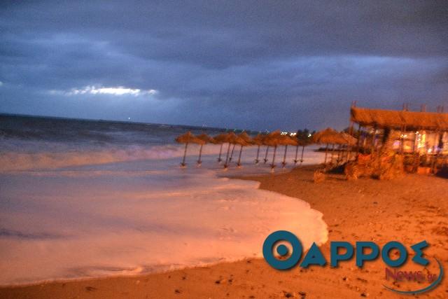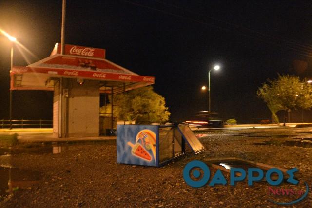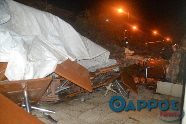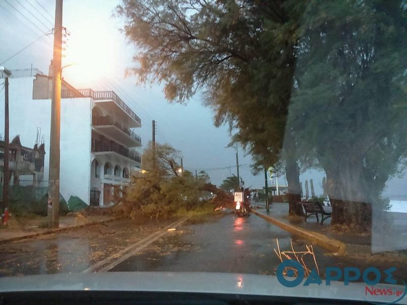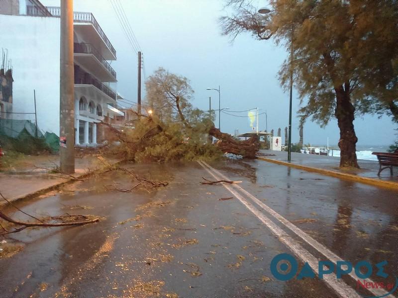 Παράλληλα δέντρα έχουν πέσει και σε παραλιακά καταστήματα, προκαλώντας αρκετές ζημίες.