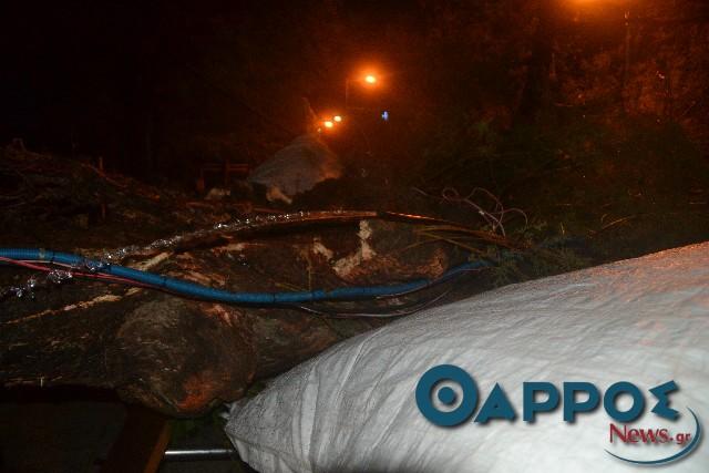 Από νωρίς, στο σημείο βρίσκονται άνδρες της αστυνομίας, ενώ δυνάμεις της Πυροσβεστικής με αλυσοπρίονα έδωσαν μάχη για να δώσουν άμεσα στην κυκλοφορία την οδό Ναυαρίνου.
