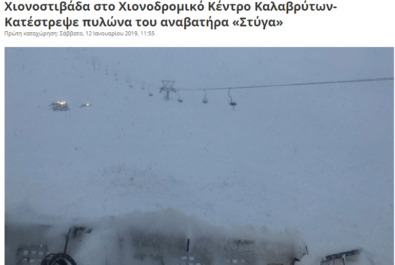 Εκτός λειτουργίας για τους επόμενους δύο- τουλάχιστον- μήνες θα βρίσκεται ο αναβατήρας «Στύγα» στο χιονοδρομικό κέντρο των Καλαβρύτων, σύμφωνα με ανακοίνωση που εξέδωσε την Κυριακή, η διοίκηση του χιονοδρομικού κέντρου μέσω του λογαριασμού της στο Facebook.