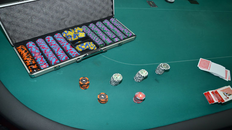 • έξι τραπέζια με πράσινη τσόχα κατάλληλα διαμορφωμένα για τη διενέργεια απαγορευμένων τυχερών παιγνίων
