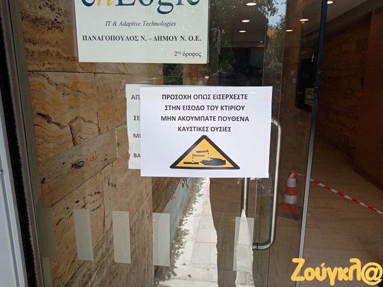 Επίθεση με βιτριόλι δέχτηκε μια νεαρή κοπέλα, το πρωί της Τετάρτης 20/5, την ώρα που έφτανε στο γραφείο της, σε εταιρεία στην οδό Θησέως, στην Καλλιθέα.