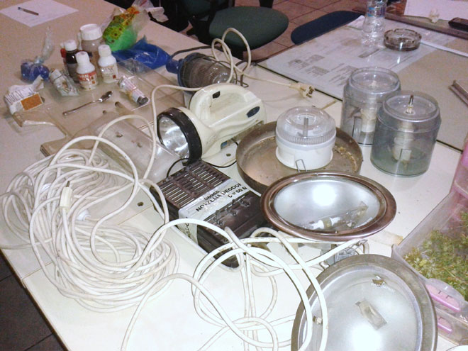 • εξοπλισμός για καλλιέργεια φυτών κάνναβης (λαμπτήρες, βάσεις φωτισμού, πλαστικά δοχεία)