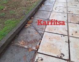 Η εικόνα προκαλεί εντύπωση αλλά και ανησυχία στους περαστικούς. Παράλληλα είναι άγνωστο αν ελλοχεύει κινδύνους για τους πεζούς που διέρχονται στο σημείο.