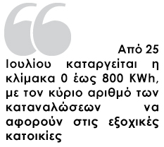 Έτσι, η τιμή της κιλοβατώρας για τους καταναλωτές που εντάσσονται στην κατηγορία ≤800 KWh/τετράμηνο αυξάνεται κατά 21%, προκειμένου να εξισωθεί με εκείνη της αμέσως επόμενης κατηγορίας (800-2.000 KWh). Σημειώνεται ότι στην κατηγορία αυτή υπάρχουν περίπου 2.160.000 παροχές που αφορούν στην πλειονότητα τους εξοχικές και δεύτερες κατοικίες.