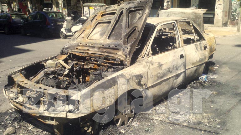 Κατά τη διάρκεια των χθεσινών επεισοδίων, στα Προπύλαια και τα Εξάρχεια, ένα αυτοκίνητο μπήκε στο στόχαστρο αγνώστων.