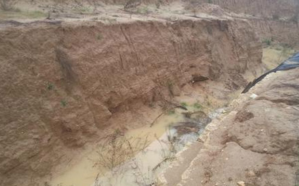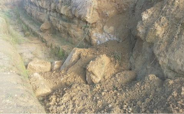 Πέριξ του μνημείου έχουν πέσει νερά και λιμνάζουν στα αυλάκια των παλαιότερων ανασκαφών.