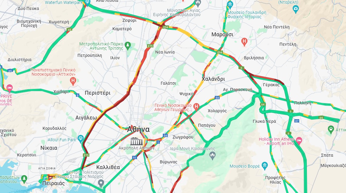Παράλληλα, καθυστερήσεις σημειώνονται και στην Αττική Οδό 15΄-20΄στην έξοδο για Λαμία προς Αεροδρόμιο, 15΄-20΄από Φυλής έως Κηφισίας προς Αεροδρόμιο, άνω των 30΄από Ανθούσα έως Μεταμόρφωση (έξοδος για Λαμία) προς Ελευσίνα, Περιφ.Υμηττού 20΄-25΄από Πλακεντίας έως Μεταμόρφωση προς Ελευσίνα.