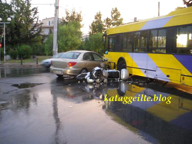 Καραμπόλα ανάμεσα σε τρία οχήματα σημειώθηκε νωρίς το πρωί στην περιοχή του Χαλανδρίου εξαιτίας της ολισθηρότητας του οδοστρώματος από την καλοκαιρινή μπόρα. Ένα ΙΧ αυτοκίνητο και μια μοτοσικλέτα συγκρούστηκαν πλαγιομετωπικά με αστικό λεωφορείο με αποτέλεσμα να πέσει οδηγός της μηχανής και να προκληθούν υλικές ζημιές στο αυτοκίνητο και το λεωφορείο του ΟΑΣΑ.