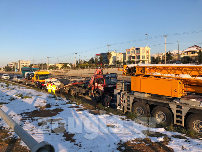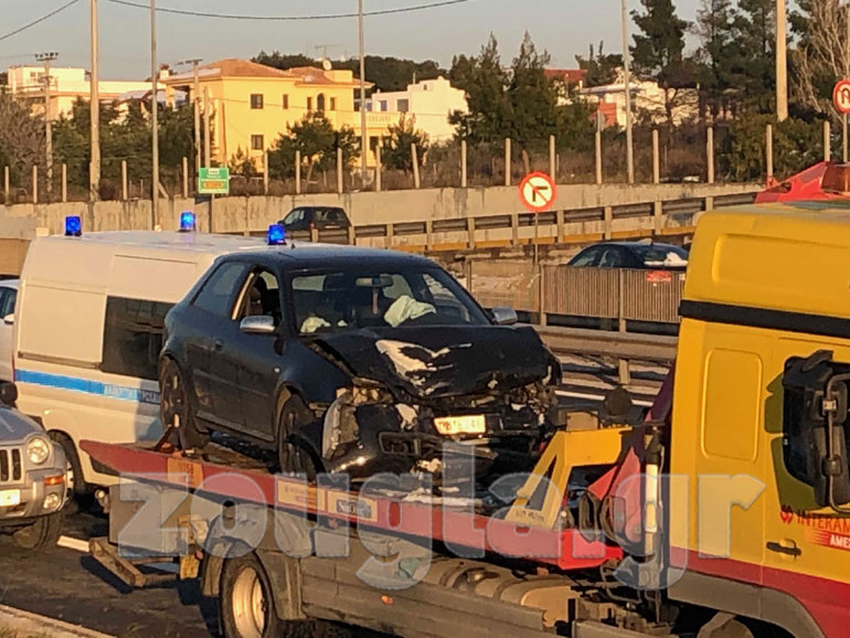 Τροχαίο ατύχημα σημειώθηκε στην κάθοδο της Εθνικής στο ύψος του κόμβου της Κηφισιάς το μεσημέρι της Τρίτης. Ενεπλάκησαν τρία οχήματα. Ένα Ι.Χ. προσέκρουσε στο πίσω μέρος συνοδευτικού μεγάλου γερανοφόρου οχήματος με αποτέλεσμα και το συνοδευτικό να συγκρουστεί με το γερανοφόρο.