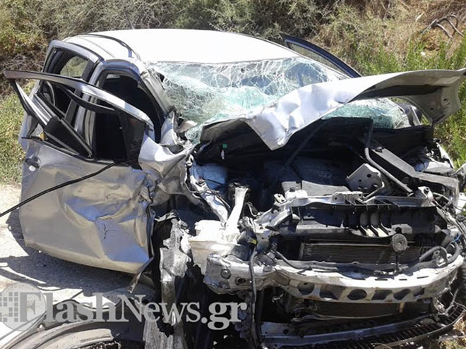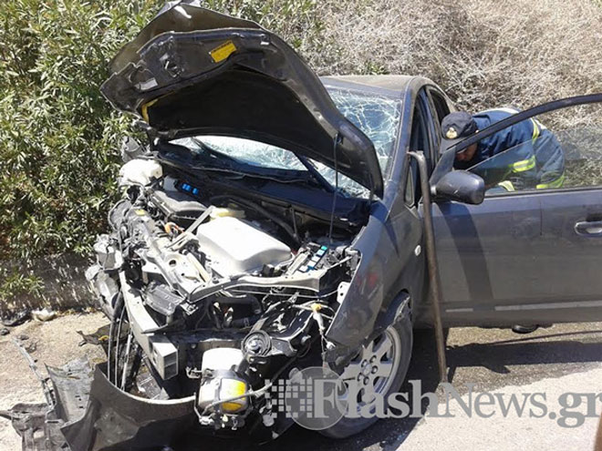 Στο όχημα με τους τέσσερις επιβάτες εγκλωβίστηκε ένα άτομο και χρειάστηκε η επέμβαση της Πυροσβεστικής για τον απεγκλωβισμό του.