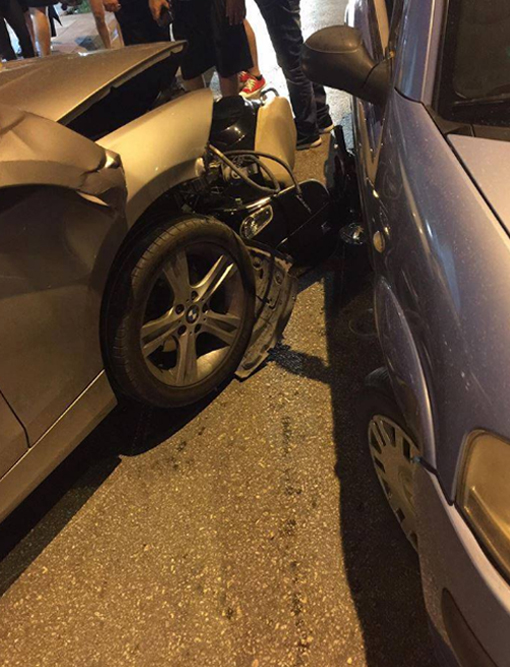 Συντρίμμια γέμισε το οδόστρωμα στη διασταύρωση των οδών Πατρών Κλάους και Βενιζέλου στην πόλη της Πάτρας.