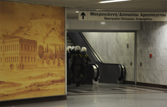 Δείτε καρέ-καρέ στις φωτογραφίες και το video που ακολουθούν την «έφοδο» των ανδρών των ΜΑΤ στη στάση του Μετρό Ακρόπολης, λίγα λεπτά μετά τα μικροεπεισόδια που σημειώθηκαν στο σημείο χθες το βράδυ.