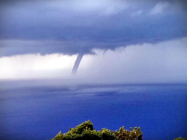 Ήταν η στιγμή όπου, στο θαλάσσιο χώρο βορειοδυτικά του νησιού έκανε την εμφάνισή του ένας υδροστρόβιλος, χαρίζοντας ένα σπάνιο θέαμα στους κατοίκους της περιοχής.