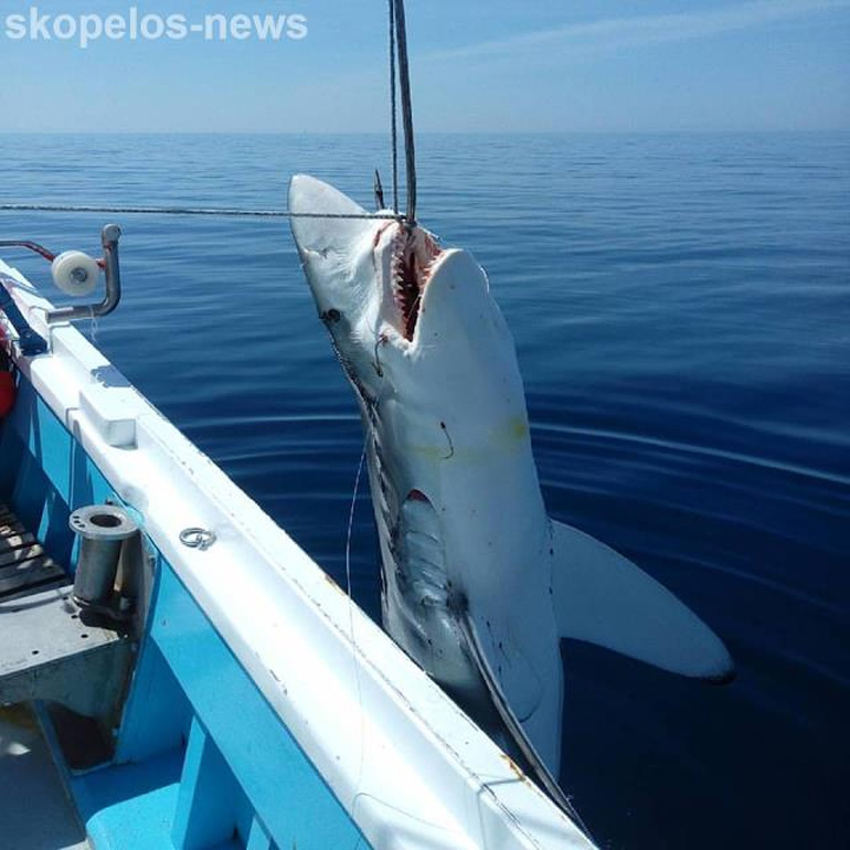 Έναν καρχαρία μήκους επτά μέτρων έπιασαν ψαράδες στη Σκόπελο.