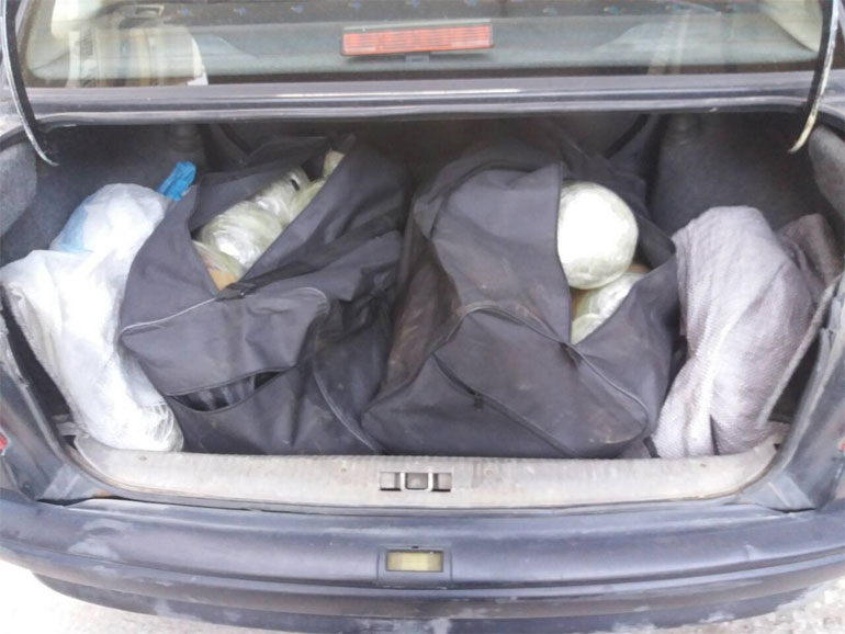 Οι αστυνομικοί φαίνεται ότι είχαν πληροφορίες για τη μεταφορά των ναρκωτικών και σε έλεγχο που πραγματοποίησαν στο όχημα που οδηγούσε βρέθηκαν τέσσερις ταξιδιωτικοί σάκοι με 32 κιλά και 330 γραμμάρια ακατέργαστη κάνναβη.