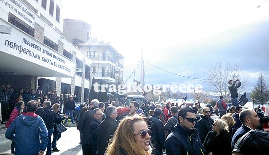 Κινητοποίηση έξω από την Αντιπεριφέρεια Καστοριάς βρίσκεται σε εξέλιξη από το πρωί της Πέμπτης, καθώς εργαζόμενοι στον Ιδιωτικό και Δημόσιο Τομέα διαμαρτύρονται για τις προωθούμενες αλλαγές στη φορολογία και το Ασφαλιστικό.